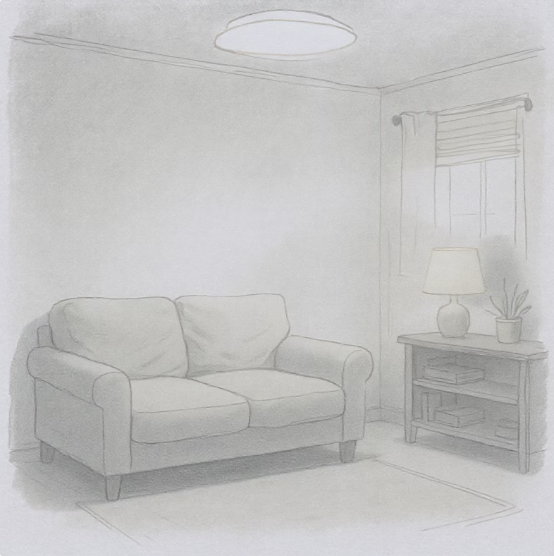 우리 대부분의 집 천장에는 방 전체를 환하게 비추는 하얀 형광등이나 LED 조명이 달려 있습니다. 이 중앙 조명은 공간을 구석구석 밝혀주는 데는 유용하지만, 모든 사물의 그림자를 없애고 공간을 밋밋하고 평면적으로 보이게 만드는 주범이기도 합니다. 마치 사무실이나 교실처럼, 편안한 휴식과는 거리가 먼 분위기를 만들죠.