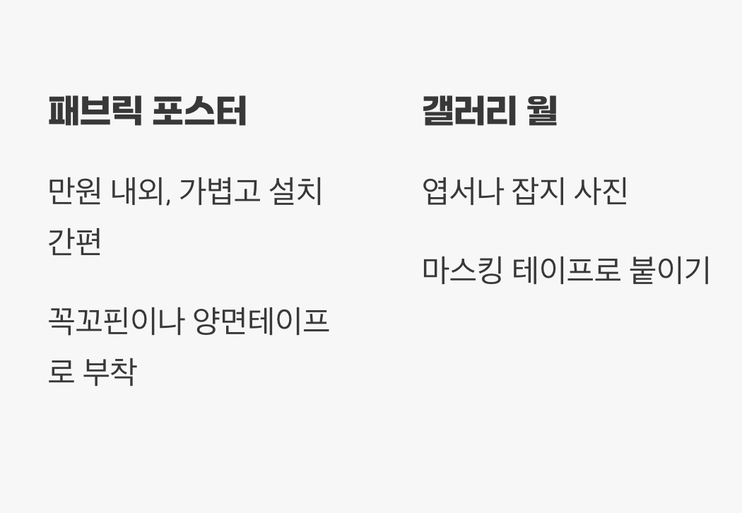 Q. 벽에 못을 박을 수 없는데, 포스터나 소품은 어떻게 걸어야 하나요?