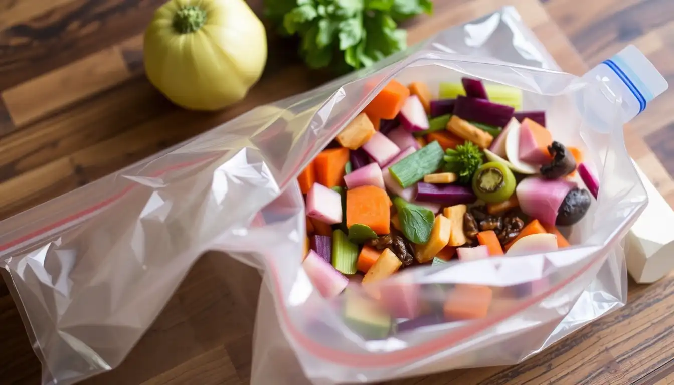 자투리 채소를 활용하는 가장 쉽고 간단한 방법은 바로 ‘채수 스톡백’을 만드는 것입니다. 냉동실에 지퍼백이나 밀폐 용기를 하나 준비해두고, 요리할 때마다 나오는 깨끗한 채소 끄트머리들을 그 안에 모으기만 하면 됩니다.