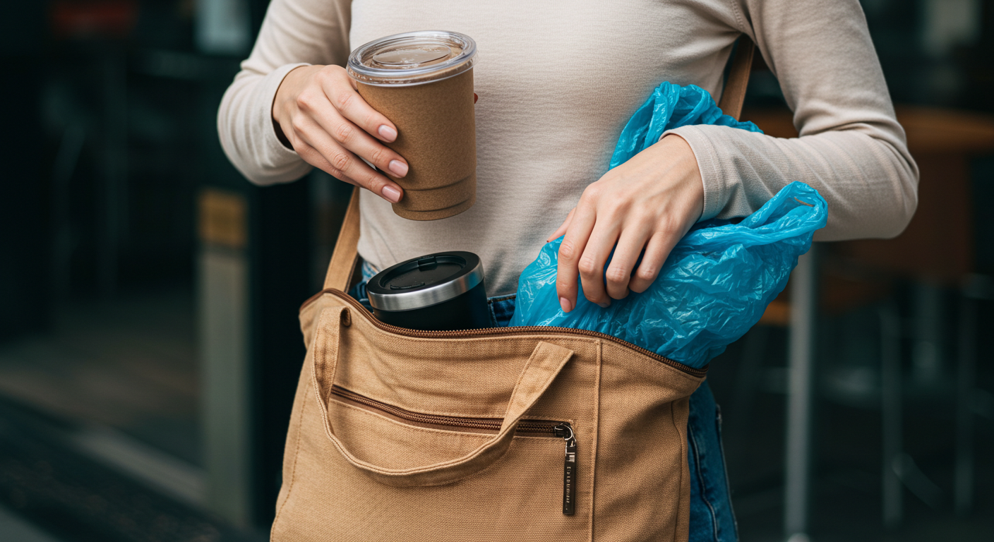 텀블러와 접이식 장바구니를 항상 사용하는 가방 안에 넣어두는 습관을 들여보세요. 외출 준비를 할 때 휴대폰과 지갑을 챙기듯, 이들을 필수품으로 여기는 것입니다. 이 작은 준비 하나가 불필요한 소비와 폐기물 발생을 막는 가장 확실한 해결책이 되어줍니다.