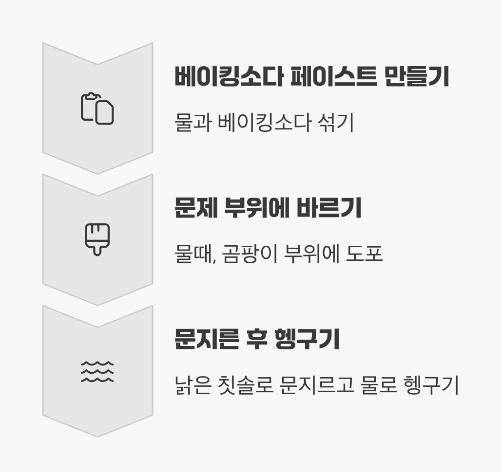이제 베이킹소다 페이스트로 안전하게 욕실을 관리해 보세요. 물을 섞어 만든 베이킹소다 반죽을 물때가 낀 곳이나 곰팡이가 핀 타일 줄눈에 발라두었다가, 낡은 칫솔로 문지르고 물로 헹궈내면 새것처럼 반짝이는 욕실을 마주하게 될 것입니다. 특히 막힌 배수구에 베이킹소다를 한 컵 붓고, 그 위에 식초를 부어주면 부글부글 거품이 일어나며 찌꺼기를 녹여주는 천연 배수관 클리너가 됩니다.