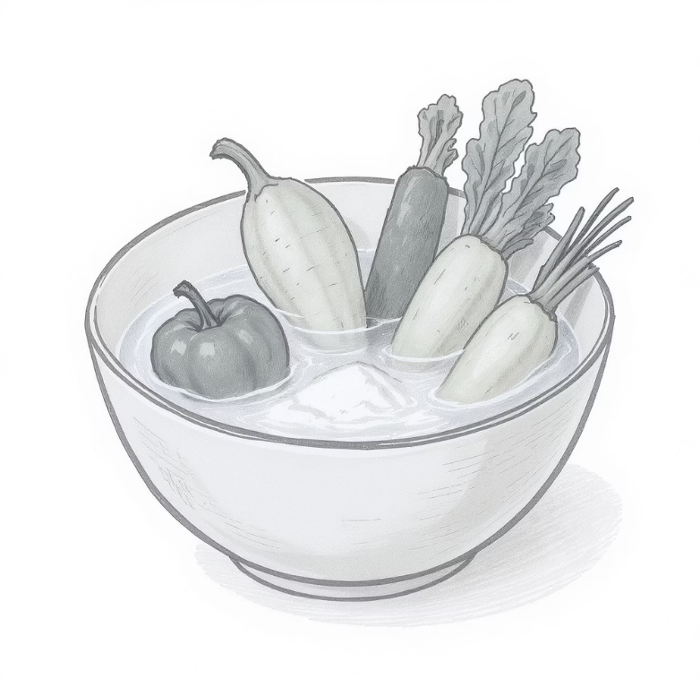 넓은 볼에 물을 담고 베이킹소다를 2~3스푼 풀어준 뒤, 과일이나 채소를 5분 정도 담가두세요. 그 후 흐르는 물에 깨끗하게 헹궈주기만 하면 됩니다. 베이킹소다의 미세한 입자들이 과일 껍질 표면의 왁스층이나 먼지, 잔류 농약을 흡착하여 떨어뜨려 주기 때문에, 훨씬 더 안심하고 껍질째 먹을 수 있습니다.