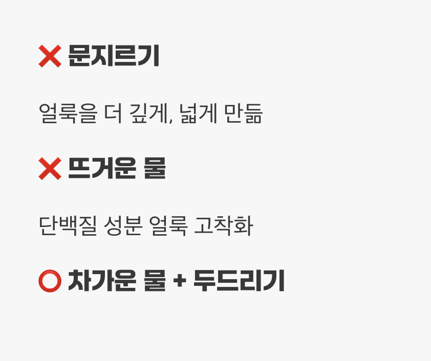 절대로 하지 말아야 할 행동: '문지르기'와 '뜨거운 물'