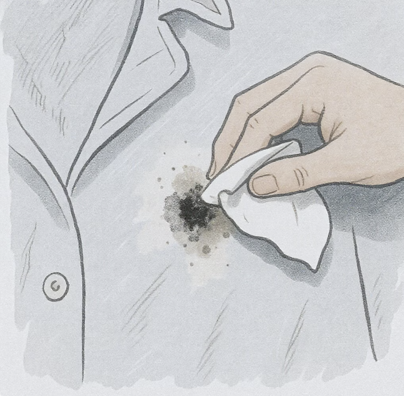 또한, 어떤 얼룩인지 정확히 알기 전까지는 절대로 ‘뜨거운 물’을 사용해서는 안 됩니다. 특히 피나 우유, 달걀 같은 단백질 성분의 얼룩은 뜨거운 물에 닿는 순간 응고되어 섬유에 완전히 달라붙어 버리기 때문입니다. 모든 응급처치의 기본은 ‘차가운 물’과 ‘두드리기’라는 것을 반드시 기억하세요.