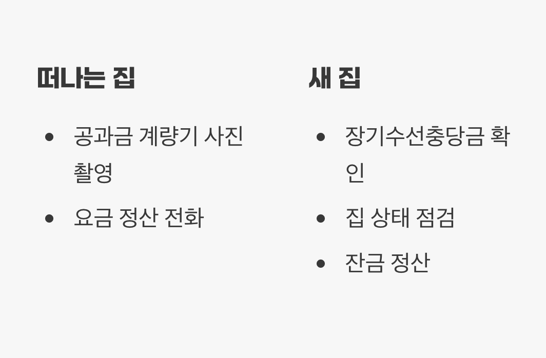 이사 전·당일·이사 후 단계별로 꼭 챙겨야 할 짐, 공과금·관리비 정산, 열쇠·카드키 반납, 전입신고·전학 수속, 임대차 확정일자 등 놓치기 쉬운 행정처리까지 상세하게 정리되어 있습니다. - 이사 준비? 무조건 보세요! 이사 전 필수 체크리스트 - 브런치스토리